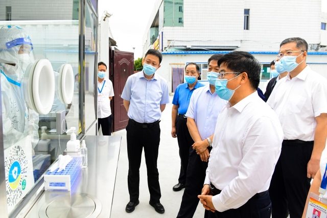 8月23日,市委书记姜四清在市进口冷冻冷藏肉品总仓、迎宾汽车站、朔州火车站等疫情防控重点场所,实地督导检查疫情防控工作,看望慰问疫情防控一线工作人员,并召开座谈会。他强调,要坚决贯彻落实党中央和省委部署要求,时刻绷紧疫情防控这根弦,始终坚持“外防输入”总策略和“动态清零”总方针不动摇,强化风险意识、责任意识,进一步强化重点场所管控,精准落实常态化防控措施,以快制快、严防严控,坚决守牢朔州阵地。市委副书记、政法委书记宋红波,市领导张震海、王琳玉、魏元平一同督导。