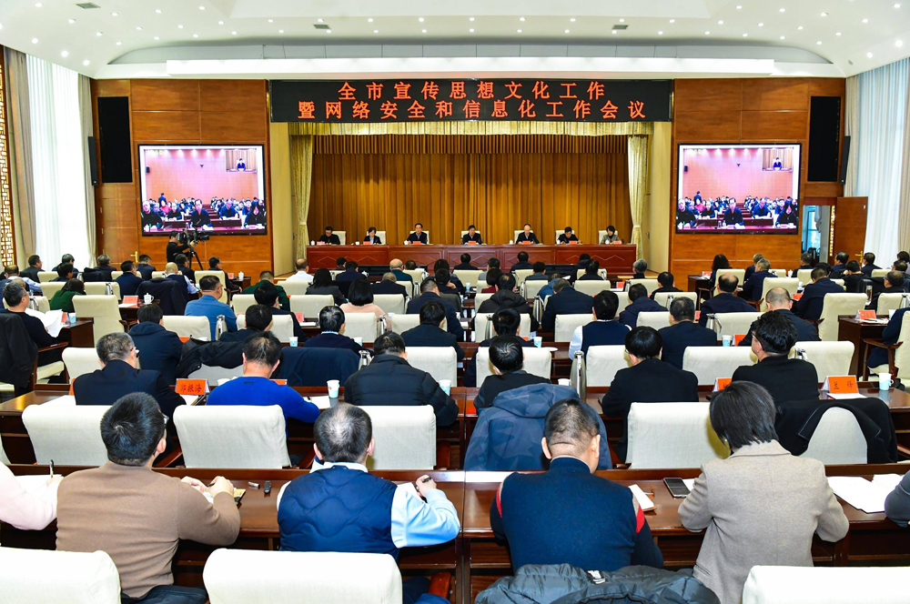 姜四清在讲话中肯定了近年来全市宣传思想文化工作和网信工作取得的成绩,分析了我市宣传思想文化工作和网信工作面临的新形势新要求。他指出,要按照习近平总书记对宣传思想文化工作“七个着力”的重要指示和对网信工作明确的“举旗帜聚民心、防风险保安全、强治理惠民生、增动能促发展、谋合作图共赢”使命任务,全面落实全国、全省宣传思想文化工作会议、网络安全和信息化工作会议安排部署,不断展现新作为,持续创造新业绩,为全市经济社会高质量发展汇聚强大精神力量。