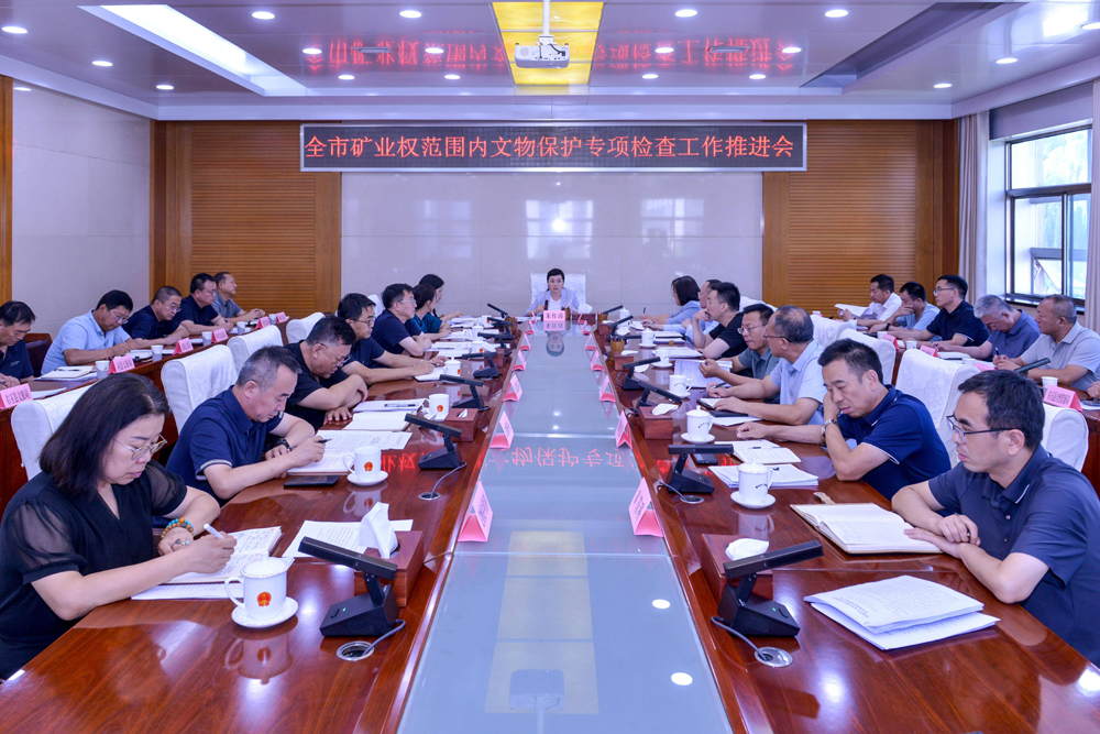 8月13日,全市矿业权范围内文物保护专项检查工作推进会召开。副市长朱红涛要求,要把此次专项检查及问题整改作为一项重大政治任务,严格执行“党政同责、一岗双责”及“谁主管、谁负责”要求,确保抓牢抓实、抓严抓细、抓出实效。要聚焦工作重点,建立问题台账,细化整改措施,强化跟踪督导,确保专项整治落实到位。要建立长效机制,加强巡查检查,实施平安工程,强化宣传教育,构建“政府主导、社会参与、全民共享”的文物保护新格局。