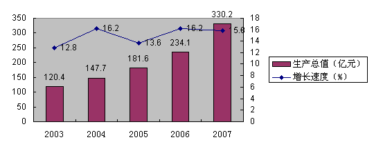 初步核算,全年全市地区生产总值330.2亿元,比上年增长15.8%。增幅高于全省1.6个百分点,居全省第三位。其中第一产业增加值29.1亿元,比上年增长6.5%;第二产业增加值201.55亿元,比上年增长17.5%;第三产业增加值99.51亿元,比上年增长15.3%。三次产业结构比重为 8.8:61.1:30.1。