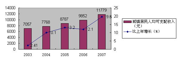 图7:2003-2007城镇居民人均可支配收入及其增长速度