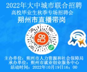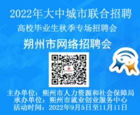 为深入贯彻落实党中央、国务院和省委、省政府关于促进高校毕业生就业决策部署,搭建高校毕业生和用人单位求职招聘对接平台,根据省人社厅《关于开展 2022 年大中城市联合招聘高校毕业生秋季专场活动的通知》(晋人社办函〔2022〕238号)要求,朔州市就业创业服务中心决定,于2022年9月初至11月中旬举办“朔州市2022 年大中城市联合招聘高校毕业生秋季专场活动网络招聘会”。