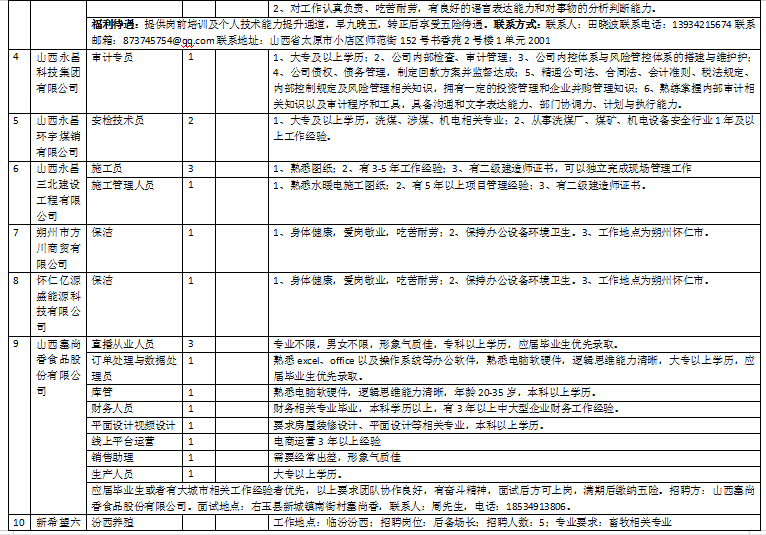 朔州市就业创业服务中心近期招聘岗位 (五十四)