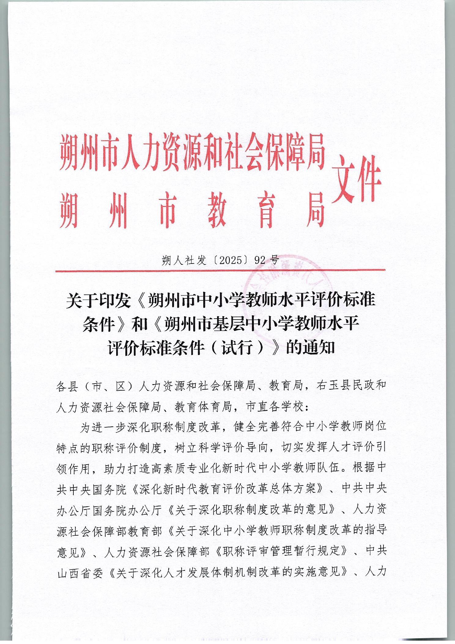 关于印发《朔州市中小学教师水平评价标准条件》和《朔州市基层中小学教师水平评价标准条件(试行)》的通知