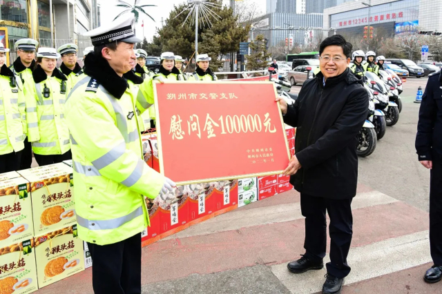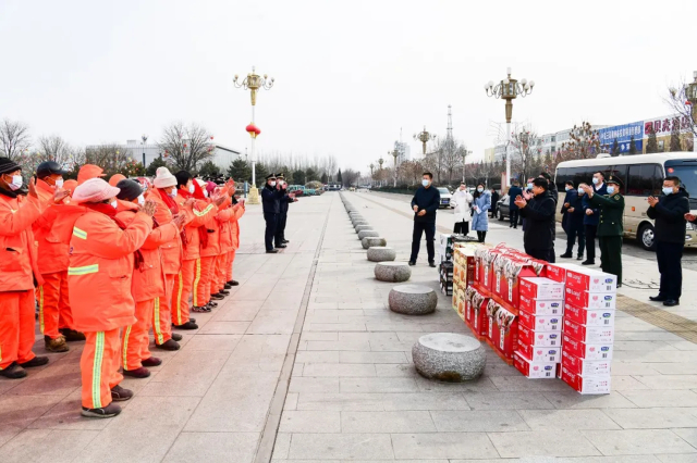 春节即将来临之际,1月30日,市委书记姜四清深入中心城区广场、执勤站点等处,看望慰问坚守在工作岗位的环卫工人、城管执法队员、执勤交警,代表市委、市政府向大家送上新春祝福,为大家送去温暖关怀和慰问金。市委常委、副市长武跃飞,市委常委、秘书长王琳玉,市委常委、朔州军分区政委张培军参加慰问。