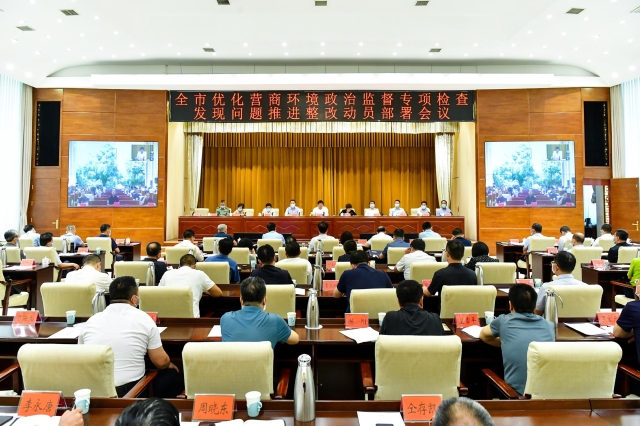 6月29日,全市优化营商环境政治监督专项检查发现问题推进整改动员部署会议召开。市委书记姜四清出席会议并讲话。他强调,要深入学习贯彻习近平总书记关于优化营商环境的重要论述,认真贯彻落实全省优化营商环境政治监督专项检查发现问题推进整改部署会议精神,进一步细化任务、压实责任,总结经验,真抓实干,以有力举措推动营商环境全面优化,为加快建设现代化的塞上绿都提供有力支撑。市委副书记、市长吴秀玲主持会议,省行政审批局副局长连建林出席会议。