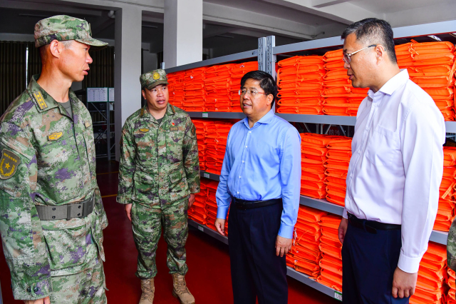 调度会后,姜四清来到市气象局,看望慰问值班人员,详细了解我市近期强降水过程发展情况和强降水落区、时段预测情况,要求气象部门严格值班值守,实时监测重点区域、关键点位降雨情况,及时精准发布预警信息,为防汛救灾提供科学可靠的气象支撑。要积极靠前服务,加强与市直部门、公共服务企业联动,主动提供气象服务,凝聚防汛安全合力。在朔城区人武部,姜四清看望慰问了基层民兵应急队伍,察看防汛应急装备、物资准备情况,要求各民兵队伍严阵以待,闻汛即动、听令即行,全力做好防汛救灾的各项准备。要全面加强民兵队伍培训和演练,提高快速反应和应急处置能力,确保安全度汛,坚决守护好人民群众生命财产安全。