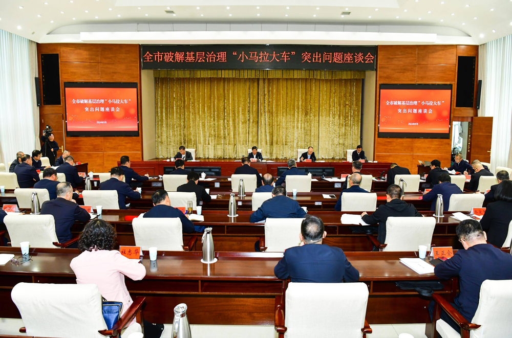 9月30日,全市破解基层治理“小马拉大车”突出问题座谈会召开。会议深入学习贯彻党的二十届三中全会精神和习近平总书记关于党建引领基层治理的重要指示批示精神,对破解基层治理“小马拉大车”突出问题进行再部署,推动全市上下统一思想认识、强化任务措施,加快推进各项工作落地见效。市委书记姜四清出席会议并讲话,市委副书记、政法委书记宋红波主持,市领导张震海、杨波参加。