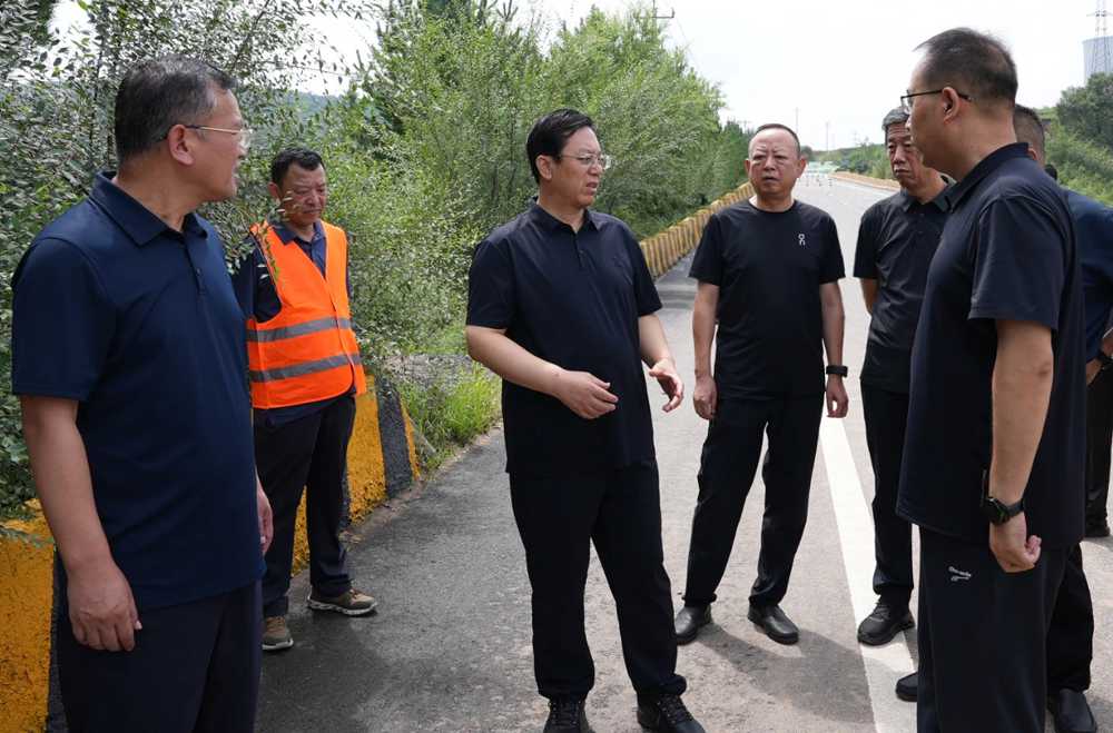 在国道241线中石湖段、平鲁区井坪镇小白洋洼村,王帅红实地察看了因强降雨导致道路损毁情况,要求继续关注天气变化,全面加大对山区道路、乡间道路尤其是临近高边坡道路安全隐患排查,严防次生灾害发生。要强化联动,在确保安全的前提下,科学组织道路修复工作,保障群众安全出行、顺利出行。在榆岭乡朝阳湾村,王帅红详细察看了源子河朝阳湾段护岸工程建设及防洪能力提升情况,要求及时做好河道巡查、清淤和维护工作,排查处理各类安全隐患,加快护岸工程建设,合理优化河渠分水功能,实现生态景观和防汛泄洪双赢。