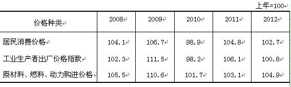 表1 2008-2012年全市主要价格指数