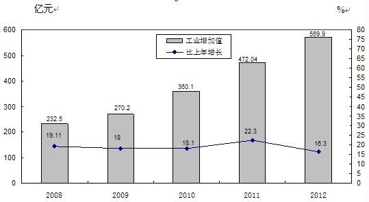 图2 2008-2012年全市规模以上工业增加值及增速