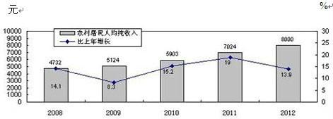 图9 2008-2012年全市农村居民人均纯收入及增速