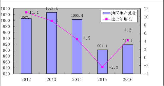 图1 2012-2016年全市生产总值及其增长速度%