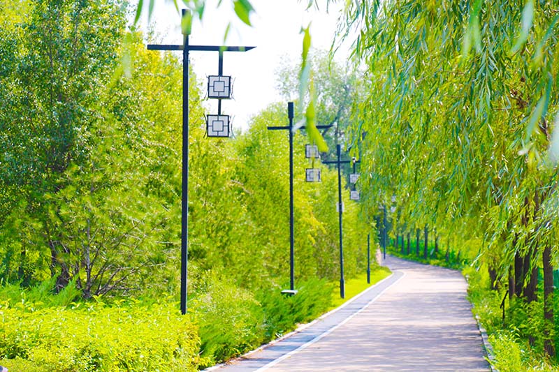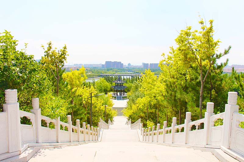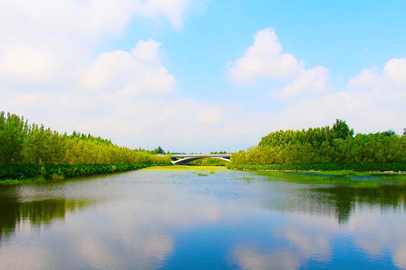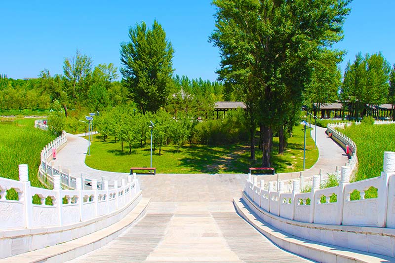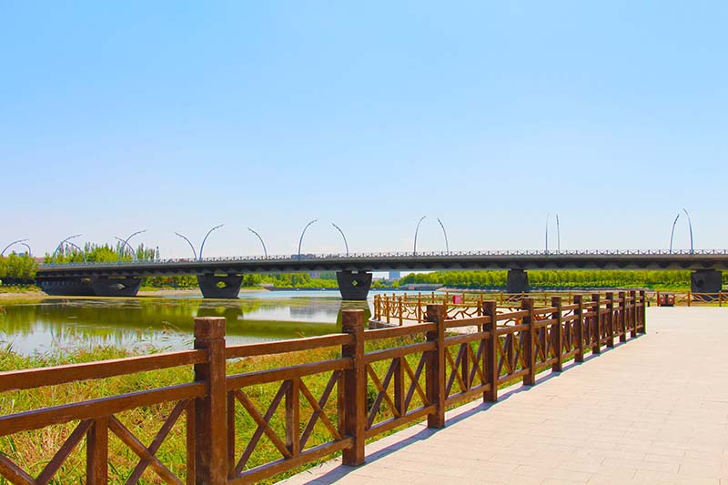 七里河沣汇公园位于安泰街桥、振华街桥和田家窑桥之间,公园总占地1280亩,其中水面545亩、绿化735亩。园内共规划设计“三园三十六景”(植物园16个景点、生态公园11个景点、民俗文化园9个景点),主要体现花卉科普、本土文化、塞上风情的特色。公园内的标志性建筑是利用130万立方的建筑垃圾和河道淤泥堆筑起的占地135亩,高37米景观山,站在山顶俯瞰,七里河生态环境综合整治后秀美景色尽收眼底,城市风光一览无余。