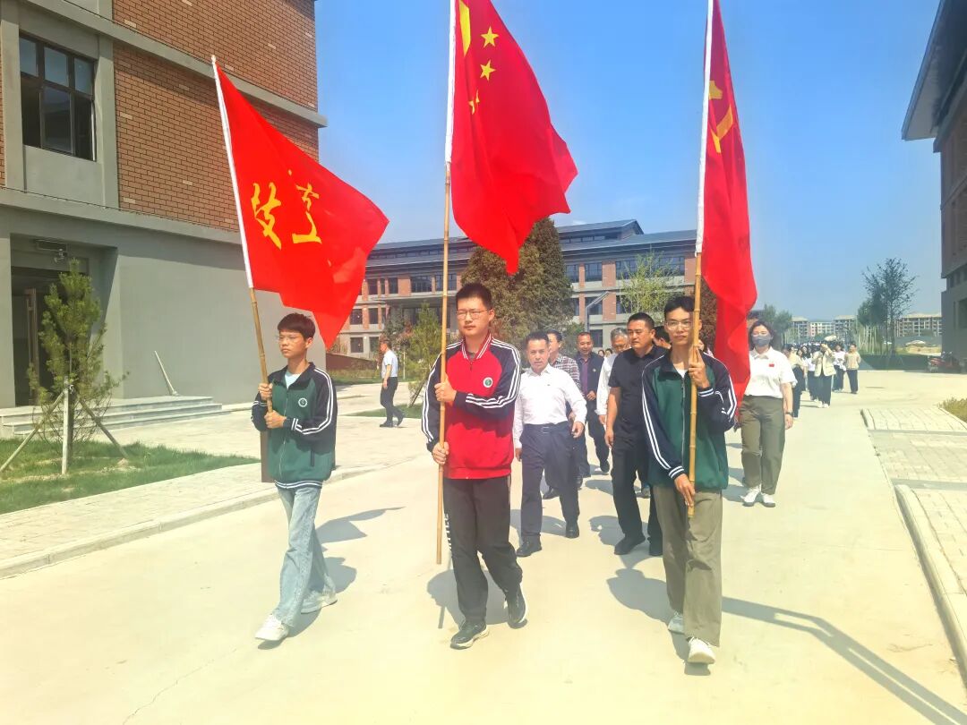 随后,师生们进行校园游行活动。游行队伍沿着校园主干道行进,展现了朔州技工学校师生团结奋进、昂扬向上的精神风貌,将整个活动的气氛推向高潮。