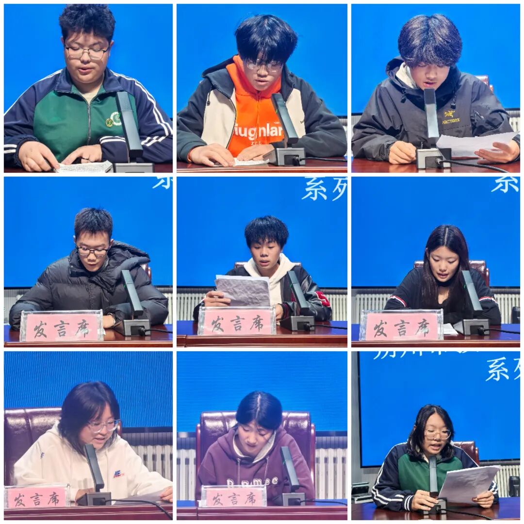 在学生代表发言环节,来自2301班、2401班、2402班、2501班、2502班、2503班、2504班的赵郅雄、崔博、白文俊、苗仟成、董木兰、宋阳、许万有、尚宏菲、李圣恩、丁瑞亿、宋婕、王琛、荆灵冉、陈园等同学依次上台。他们结合自身参与活动的经历,分享了在活动中的收获、感悟与成长,表达了对学校提供展示平台的感谢,以及将继续努力、锤炼技能、为校争光的决心,充分彰显了新时代技工学子的青春风采。
