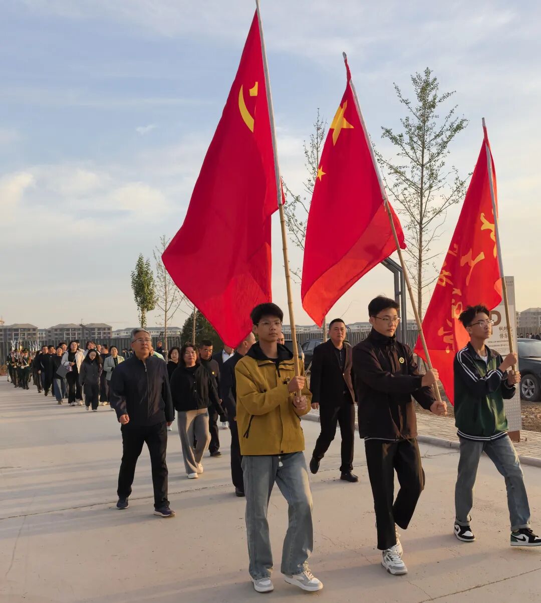 学生代表与教师代表相继发言,表达了对祖国的热爱与祝福。校党总支书记、校长韩启亮表示,五星红旗承载着无数先辈的信仰与牺牲,凝聚着亿万人民的奋斗与希望。在习近平新时代中国特色社会主义思想的指引下,我们的国家取得历史性成就,正稳步迈向中华民族伟大复兴。他向同学们提出三点期望,一是心怀感恩,感恩中国共产党,感恩新时代,要珍惜机遇,奋发进取,用技能点亮人生。二是勇担使命,国家正推进制造强国、质量强国、技能中国建设,作为技工院校师生,肩负技能报国的使命。三是铸就匠心,要弘扬劳模精神、劳动精神、工匠精神,做到执着专注、精益求精、一丝不苟、追求卓越。最后,全体师生绕广场游行三圈,以坚定的步伐展现新时代技工人的精神风貌。
