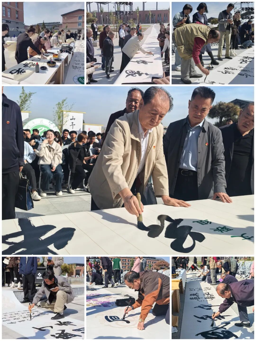 随后,全体人员移步创作现场,在百米长卷上挥毫泼墨,以三行诗的形式抒发爱国情怀。师生们或凝神构思,或挥洒自如,将心中的祖国化作笔下的诗行。创作间隙,大家品茗交流,共享文化艺术盛宴。