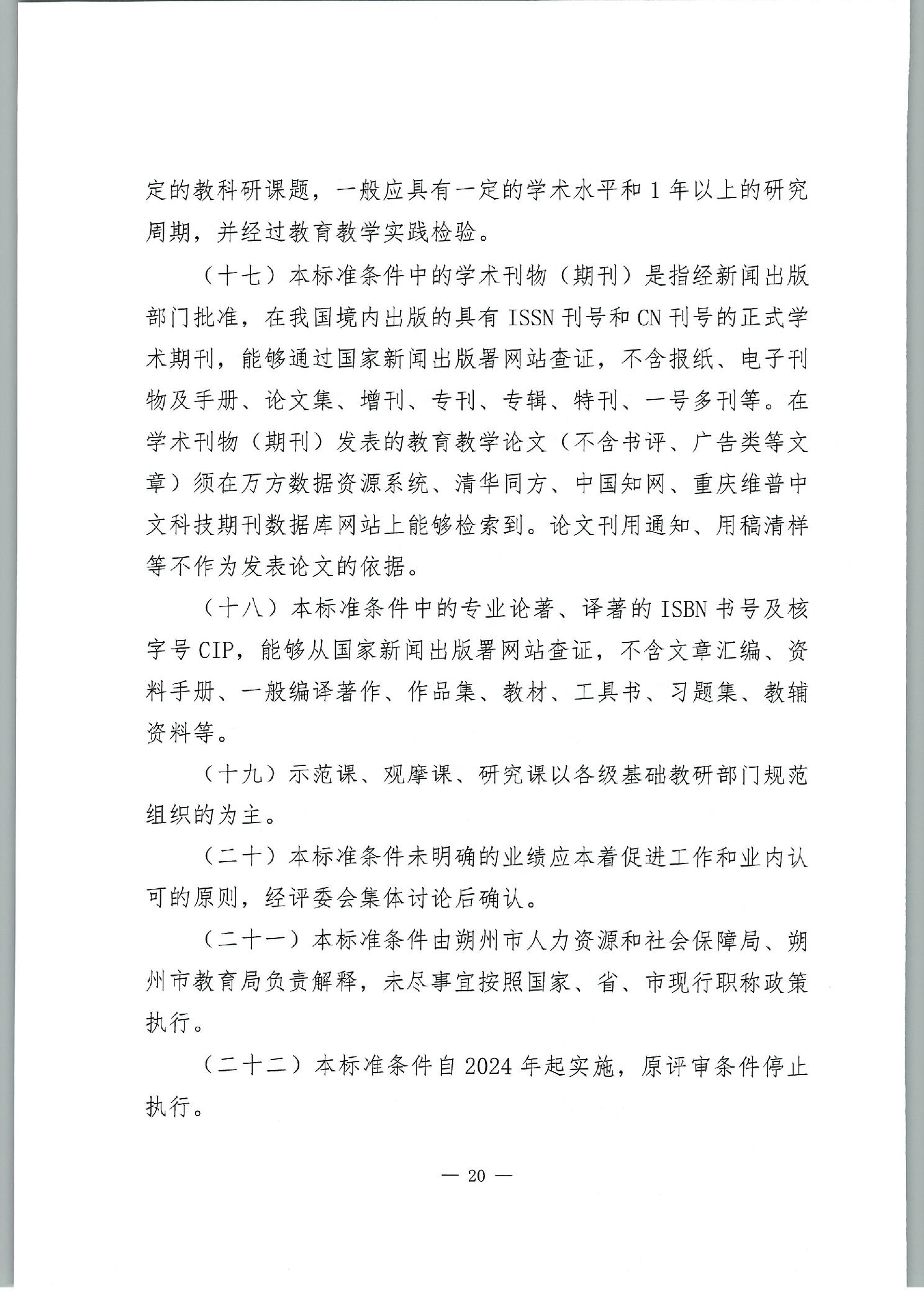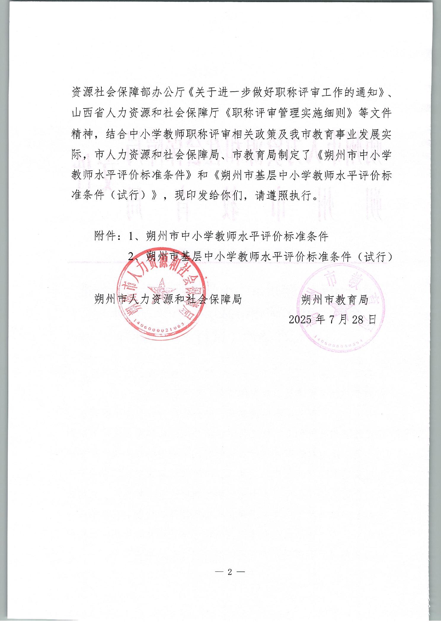 关于印发《朔州市中小学教师水平评价标准条件》和《朔州市基层中小学教师水平评价标准条件(试行)》的通知