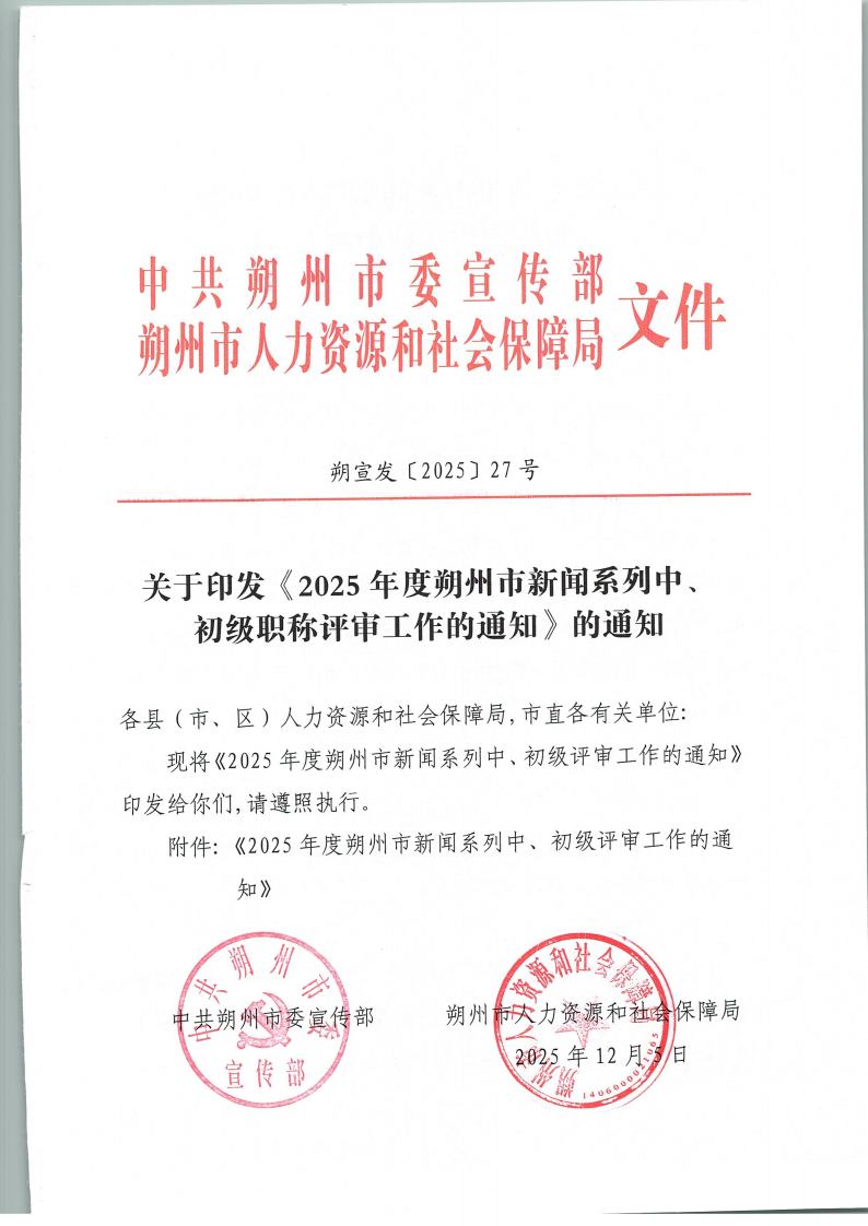 2025年度朔州市新闻系列中、初级职称评审工作的通知