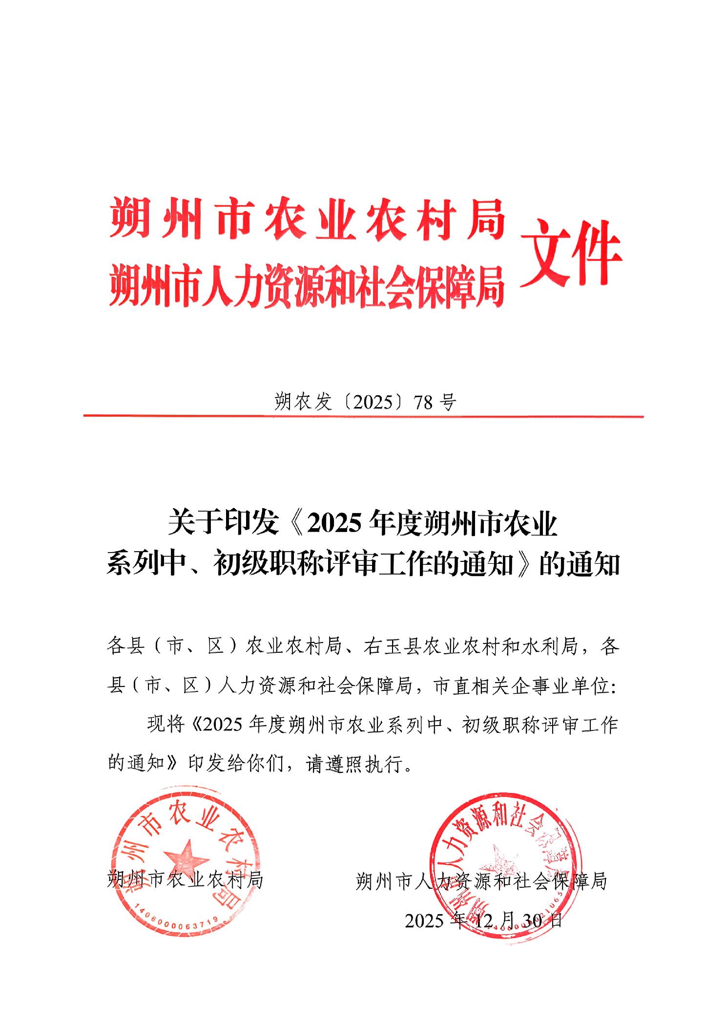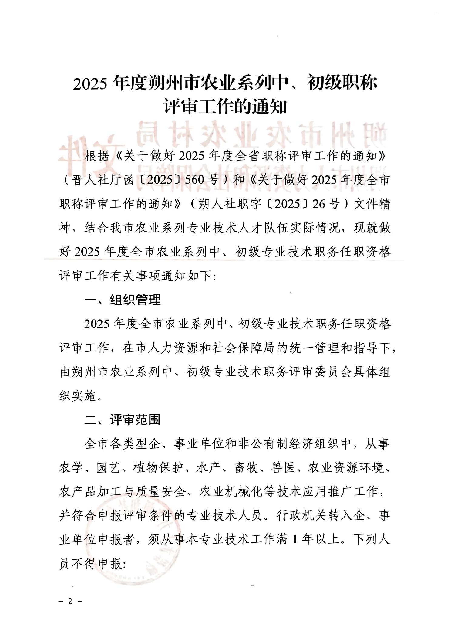 关于印发《2025年度朔州市农业系列中、初级职称评审工作的通知》的通知