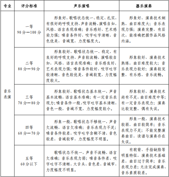 2、单独招生(艺术类)考试要求及评分标准主要包括: